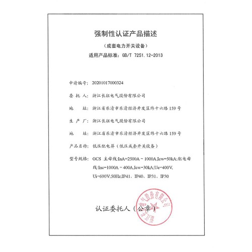 GCS低壓配電屏(低壓成套開關(guān)設(shè)備)強制性認證產(chǎn)品描述