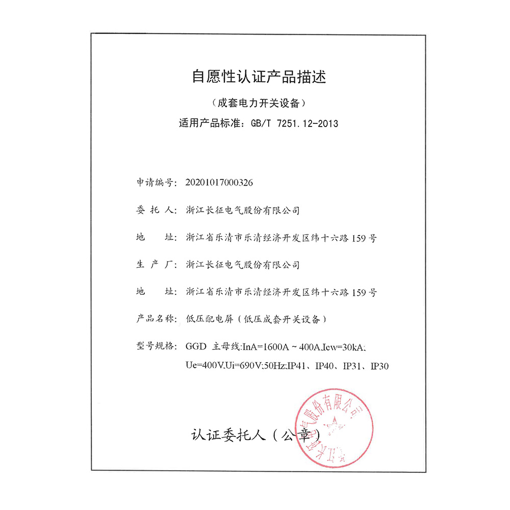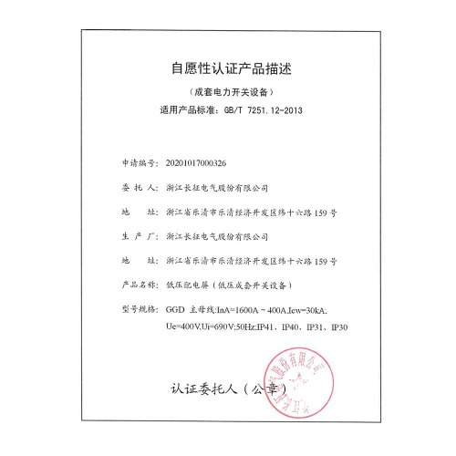 GGD低壓配電屏(低壓成套開關(guān)設(shè)備)自愿性認證產(chǎn)品描述