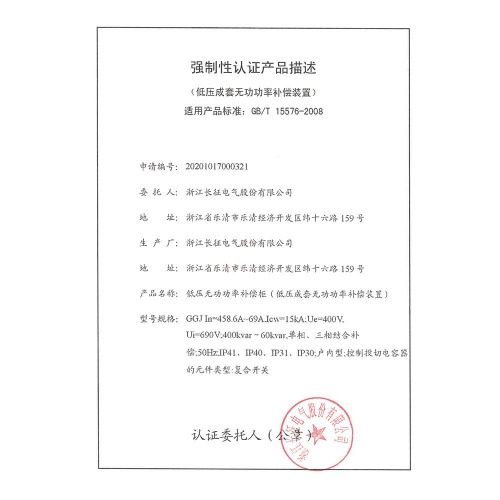 GGJ低壓無功功率補償柜(低壓成套無功功率補償裝置)強制性認證產(chǎn)品描述