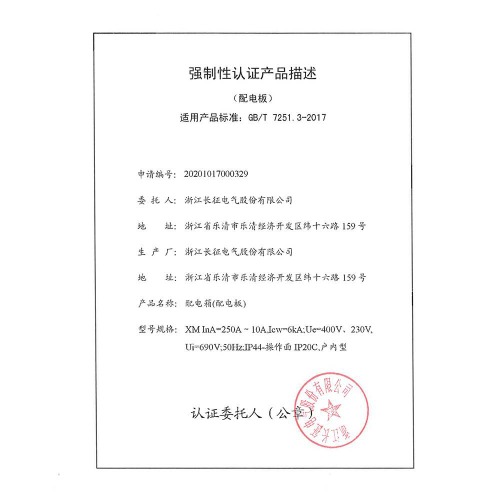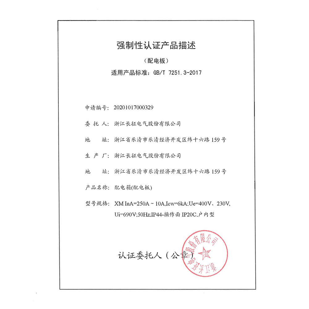 XM 250-10A配電箱強制性認證產(chǎn)品描述