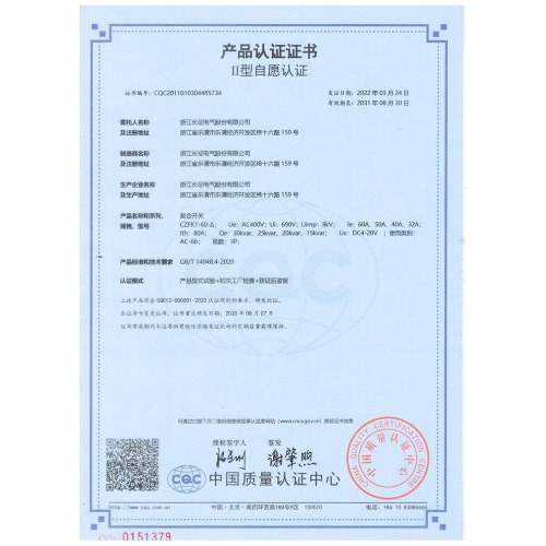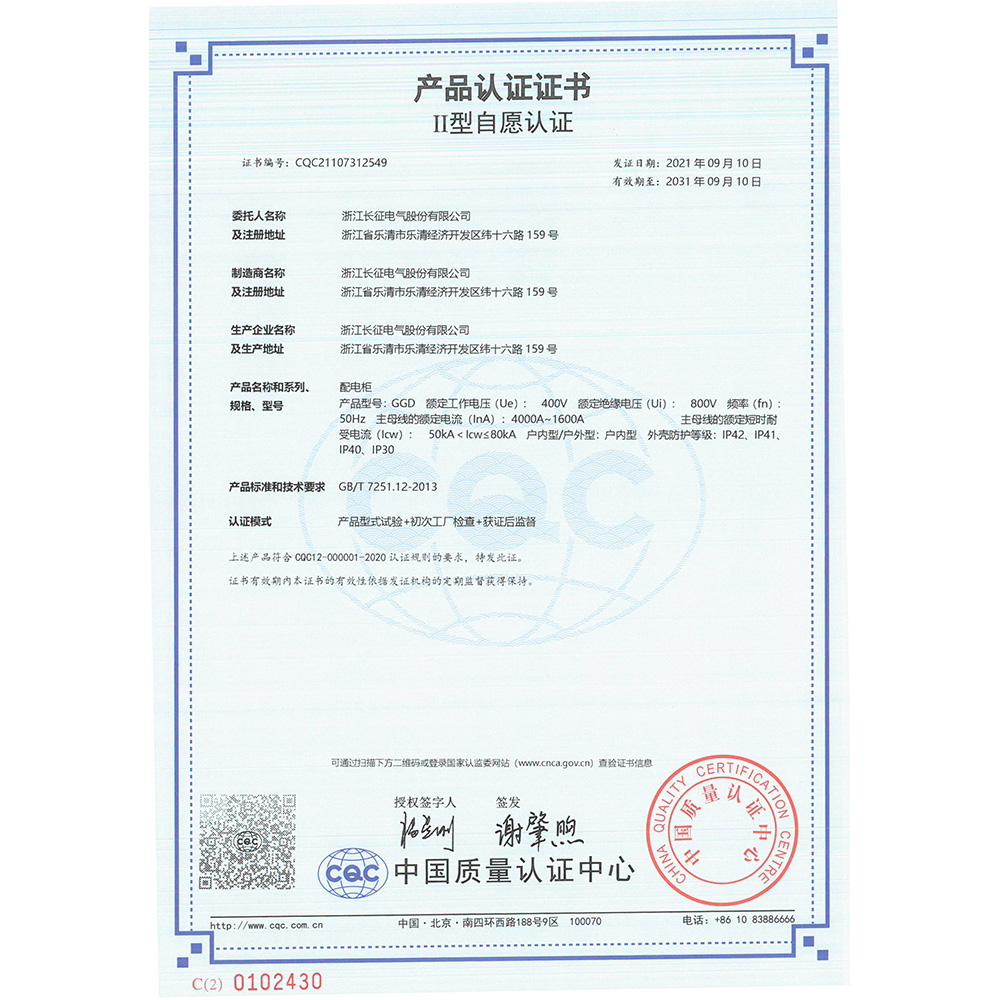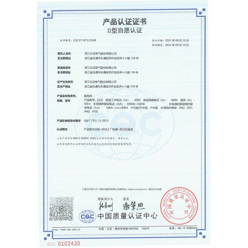 GGD配電柜 產(chǎn)品認證證書
