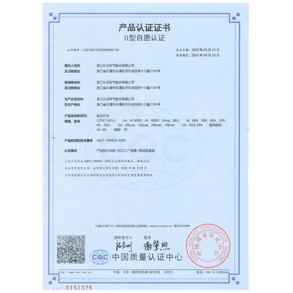 CZFK1-60-△復合開關 產(chǎn)品認證證書