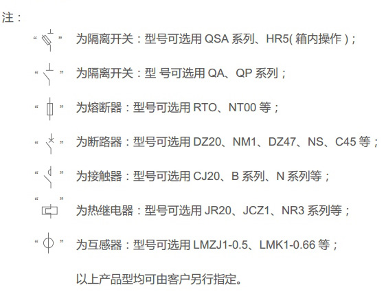 ● 柜內(nèi)元器件清單(主母線規(guī)格);