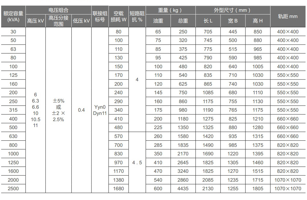 高壓側(cè)電壓等級(jí) (kV)